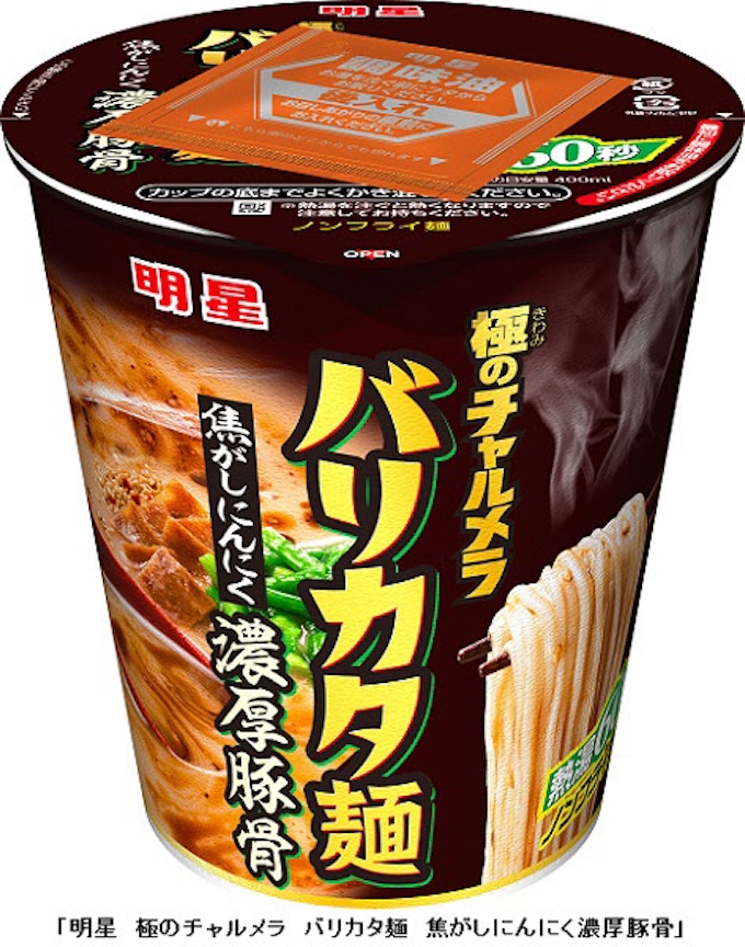 明星食品 タテ型bigサイズカップめん 明星 極のチャルメラ バリカタ麺 焦がしにんにく濃厚豚骨 を発売 日本経済新聞