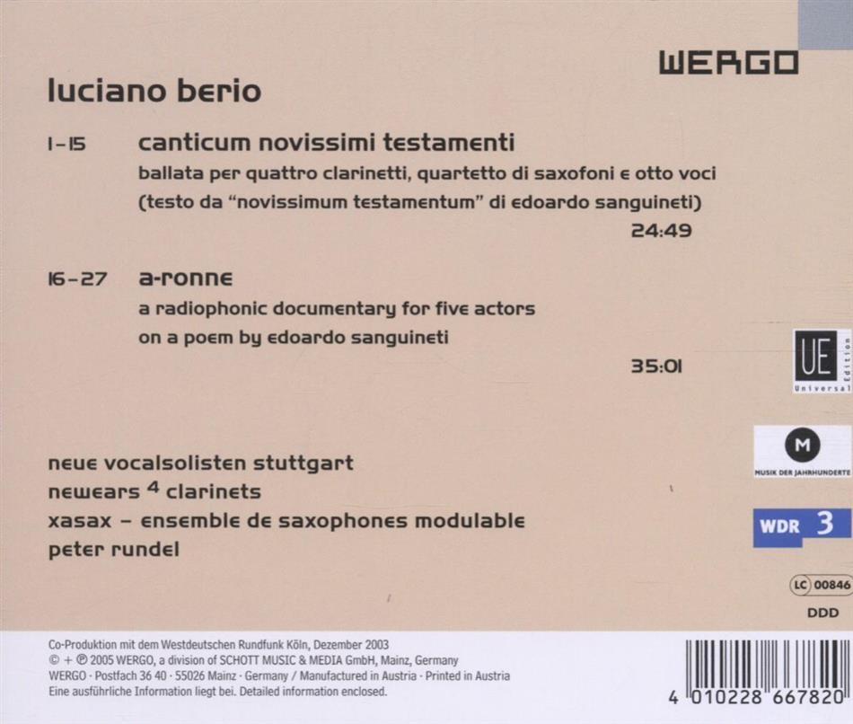 Berio Canticum Novissimi Testamenti A Ronne Wergo Wer667 Cd Presto Classical
