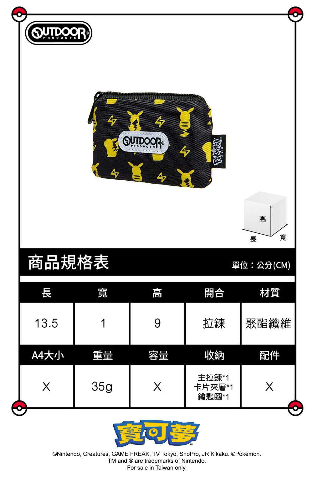Outdoor Pokemon 寶可夢聯名款潮黑皮卡丘票卡零錢包 黑色odgob14bk Bag To You百達遊