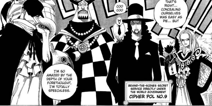 1 Tentang 2 Agen 3 Grup CP 4 Trivia 5 Navigasi Situs Berbagai Chiper Pol ditempatkan di seluruh dunia dan menyelidiki untuk informasi Pemerintah Dunia. Rokushiki sangat menambah kekuatan mereka mulai dari serangan, kecepatan dan pertahanan. Kelihatannya dia sudah mati, tetapi karena kematian adalah hal yang jarang di One Piece, kelihatannya Nero masih hidup.