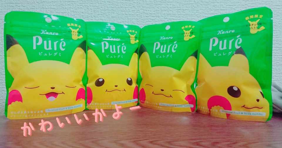 ピュレグミ×ピカチュウの 「⚡️でんげきトロピカ味⚡️」 ってどんな味? 🤔💦 って思ってたんだけど、 パイン、マンゴー、バナナ、ソーダをミックスした味なのね ️ ハート型、ピカチュウ型のグミも入っているらしい o’ᆺ’o 💕💕 パッケージ4種類. ピカチュウデザインの「ピュレグミ」がカンロから期間限定で発売されます。 なんとピカチュウ型のグミが入っているんですよ。 パッケージも複数パターンがあってどれもかわいいんです。 ピカチュウ.