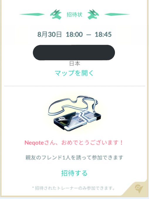 ・exレイドはその日その場所その時間の招待状を持っている人しか参加できないのでしょうか。招待状をもらってない自分は参加できますか? ・exレイドの時間になってから捕獲画面までの流れを教えていただけないでしょう? 以上の2点を詳しくお願いし. EXレイドに当選しても参加できない人はその悔しさをフレンドに託すことが可能!! EXレイド招待に関して判明していること!! ・招待は1人のフレンドから受けることができる(逆もしかり) ・招待を受けた側は辞退することも可能 ・招待を送れるのは1回のみ 今流行りの話題 ミュウツー攻略. 例えそこでexレイドが開催されたとしても絶対数が少ない田舎では仕事や学校で参加できない人も多いかもしれません。 そうなれば絶望的です。 3人くらいしか集まらないジムで戦うこともできずにひたすら気まずい空気が流れて、結局45分経ってEXレイドが.