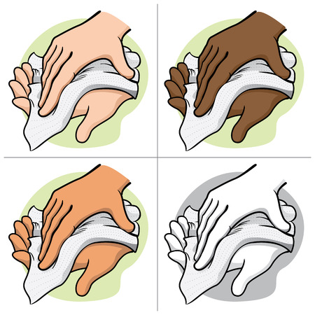 拭くとペーパー タオルやナプキン アフリカ降下の彼の手を拭く人のイラスト 制度資料やカタログに最適のイラスト素材 ベクタ Image
