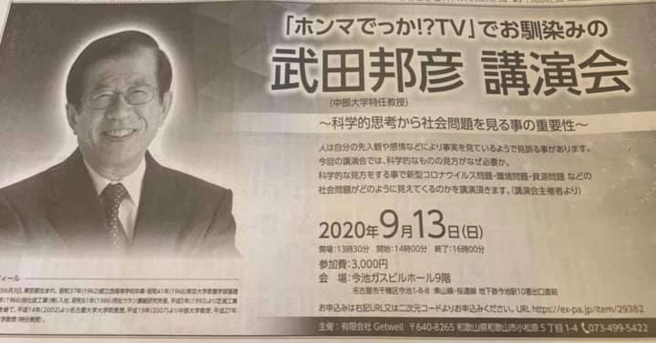 9月13日 日 ホンマでっかtv 武田邦彦氏 外では言えない真実を共有しよう 講演会 オフラインセミナー 名古屋で開催決定 ロコプレス名古屋