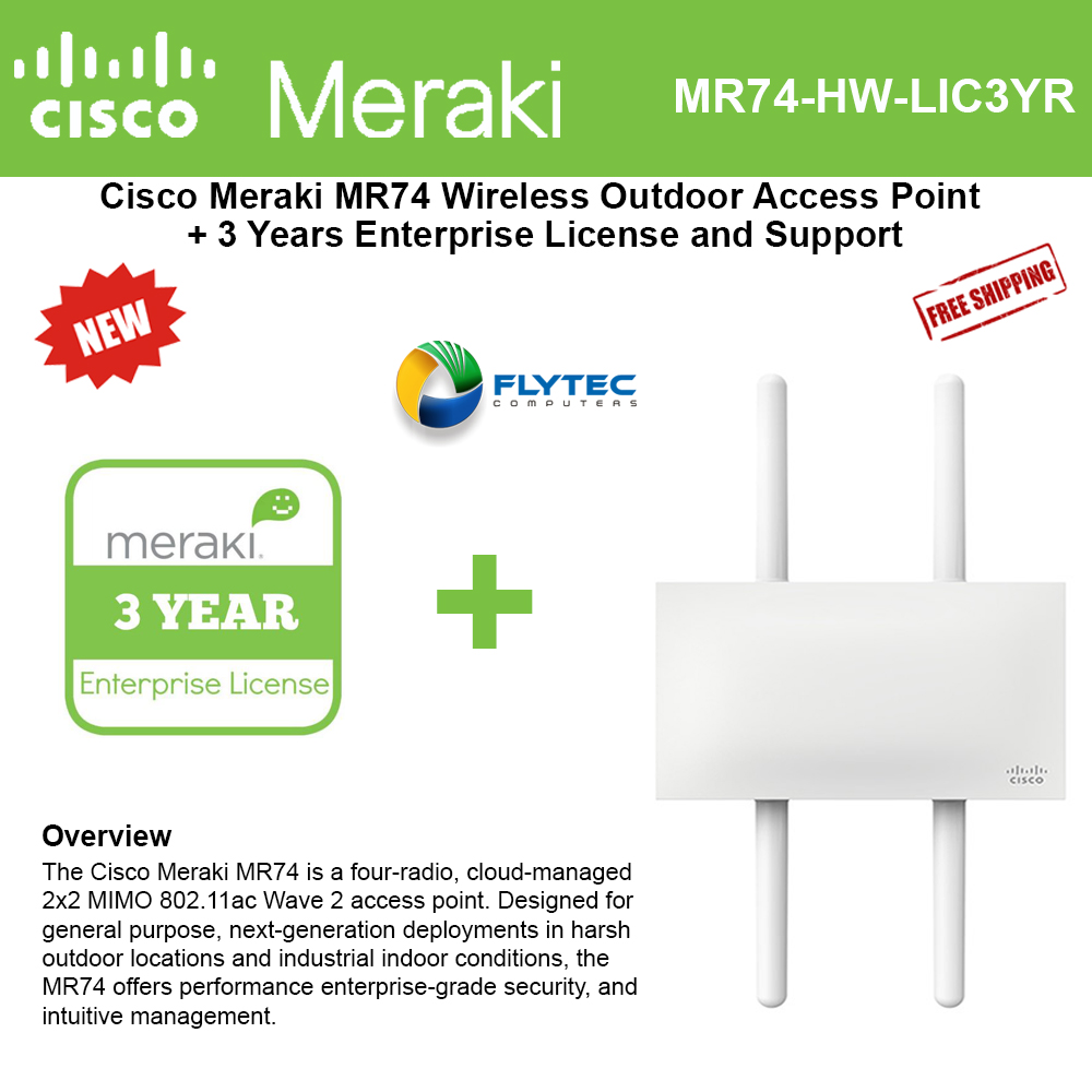 Mr74hwlic3yr Cisco Meraki Mr74 Wireless Outdoor Access Point 3yr Ent License And Support