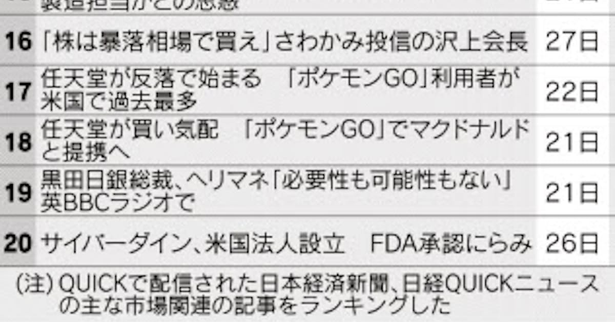ポケモンgo 関心続く 任天堂や関連株が乱高下 日本経済新聞