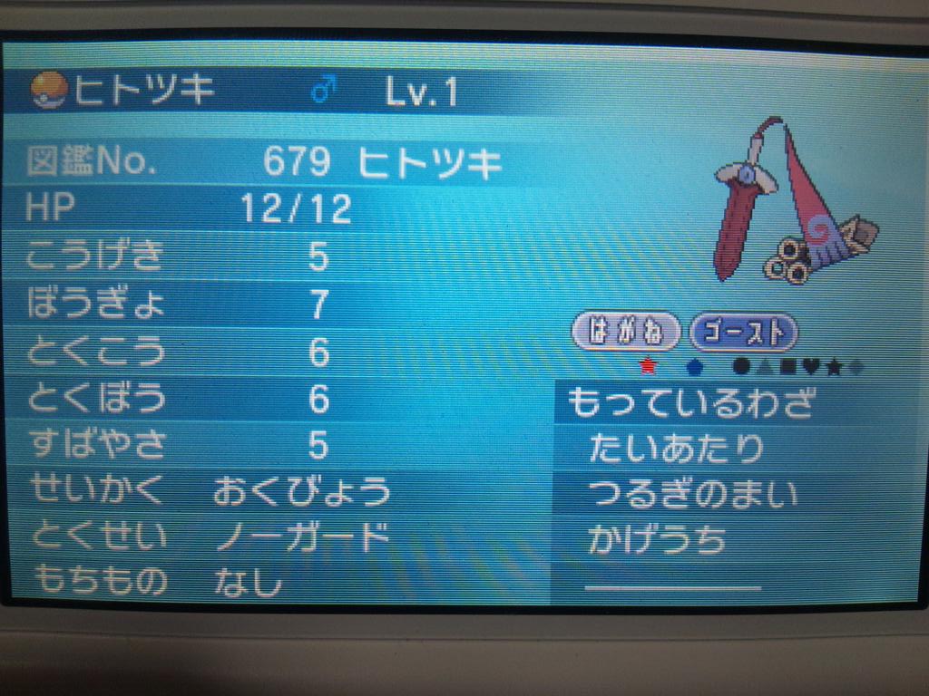 厳選メモ 配信 ポケモン受け取り時ステータス のんびりポケモン日記