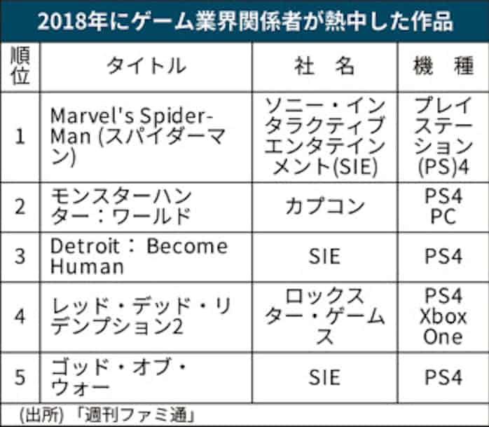 18年の1位は スパイダーマン ファミ通ランキング 日本経済新聞