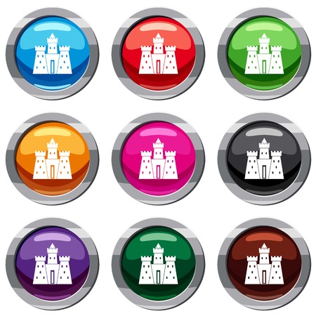 古代の城宮殿アイコン白青色の背景ベクトル図に分離のイラスト素材 ベクタ Image