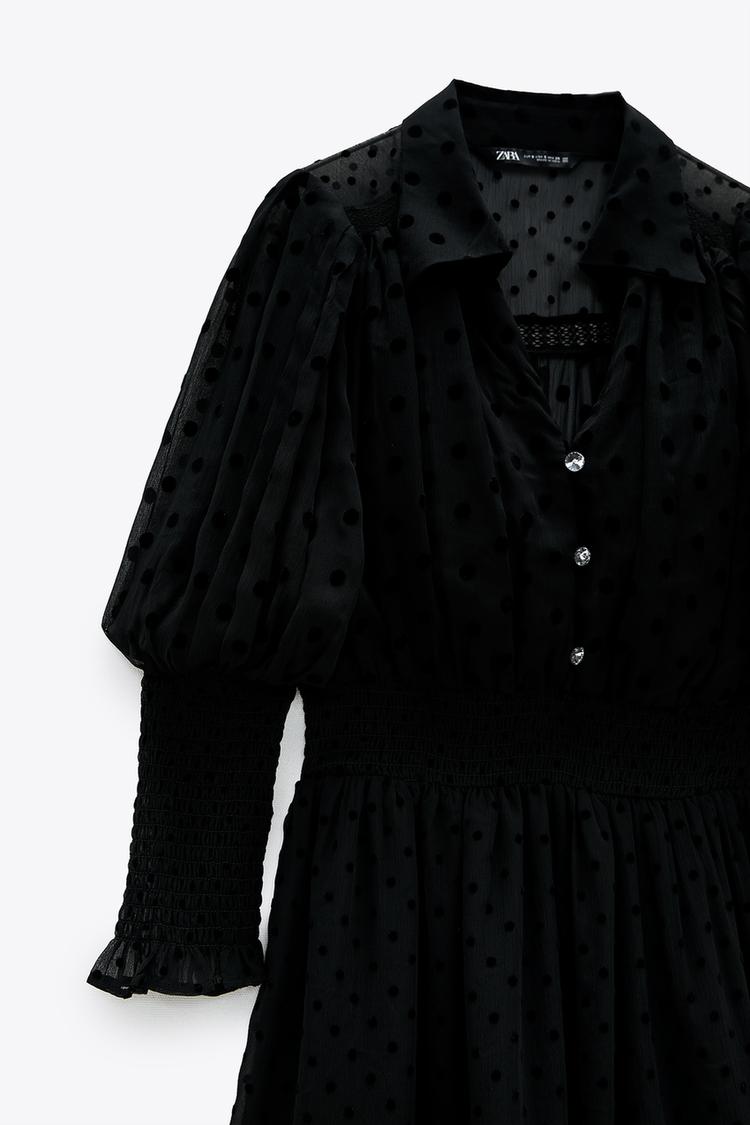 Zara ザラ の 刺繍ドットワンピース 長袖 黒 ワンピース Wear
