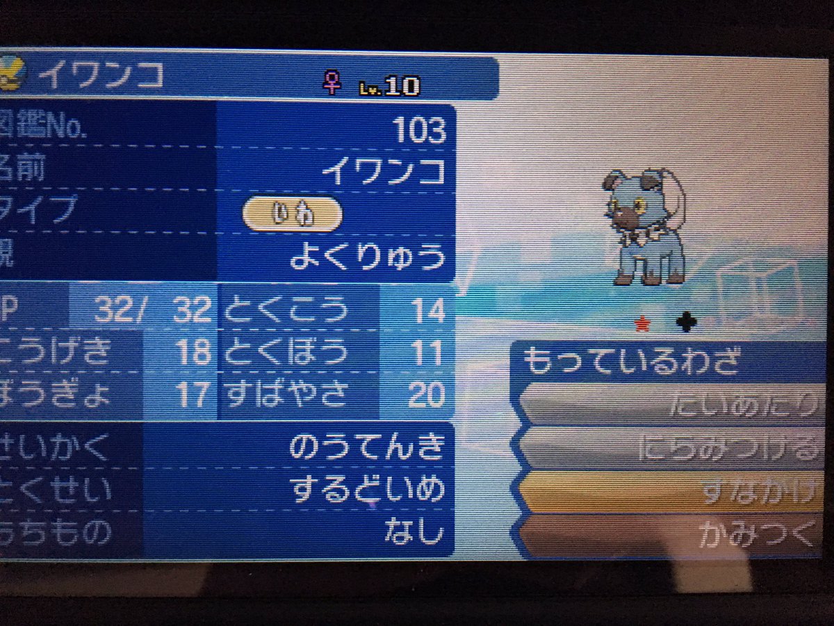 エルザ בטוויטר 陽気特別なイワンコ プレシャスボール固定 厳選 V不明 とりあえずルガンガン たそがれのすがた をストーリーで使いたかった為に厳選 Vは不明でめざパは使わないので性格厳選のみ リセット回数7回 ポケモン ウルトラムーン エルザのポケモン